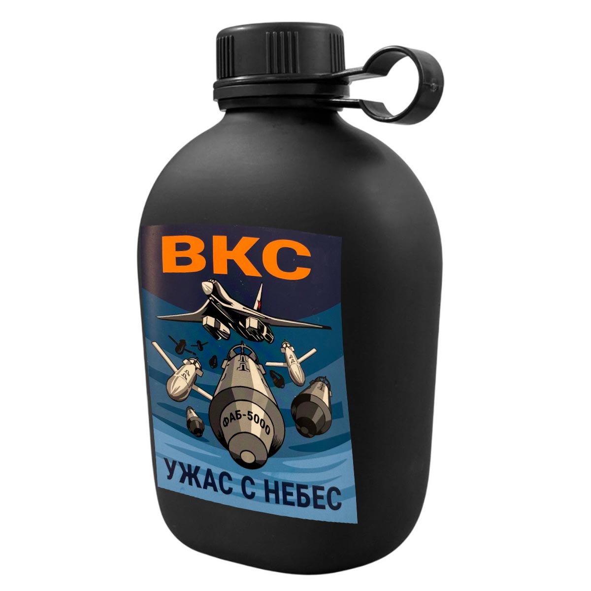 Походная фляга ВКС "Ужас с небес" с виниловой наклейкой (1 л, 19.5 х12 см)