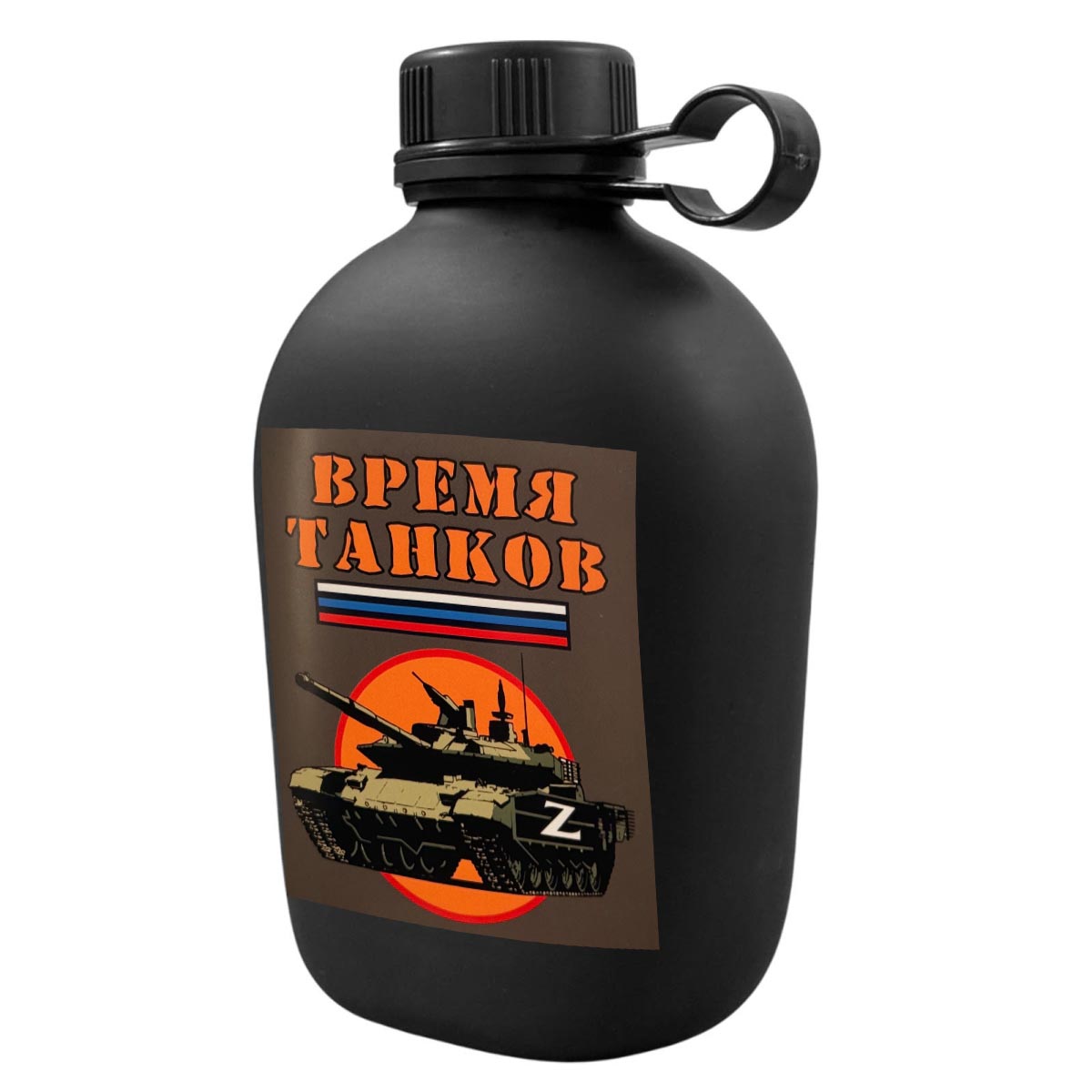 Походная фляга "Время танков" с виниловой наклейкой (1 л, 19.5 х12 см)