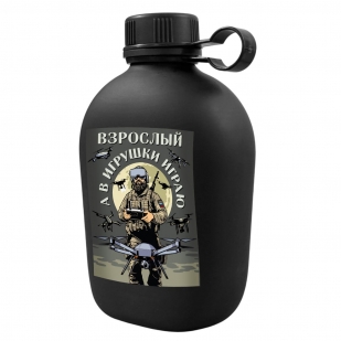 Купить походную флягу "Взрослый, а в игрушки играю" Дронармия можно в Военпро, с удобной доставкой по всей РФ.