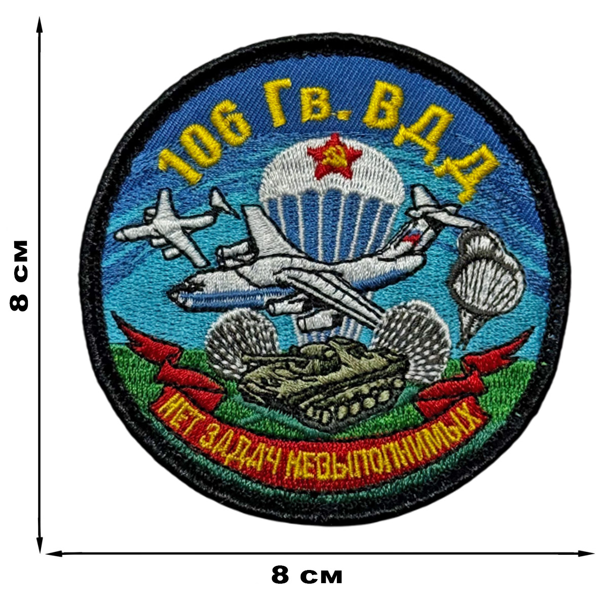 Шеврон 106 гв. ВДД "Нет задач не выполнимых" (8х8см)