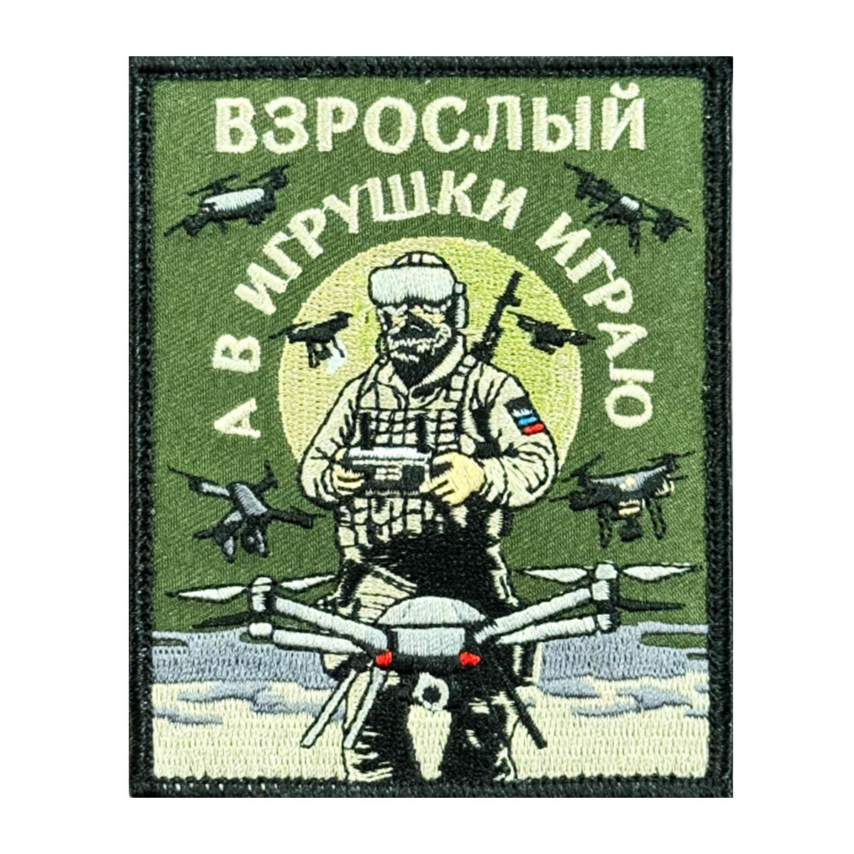 Купить шеврон на липучке "Взрослый, а в игрушки играю" можно в Военпро, с удобной доставкой по всей РФ