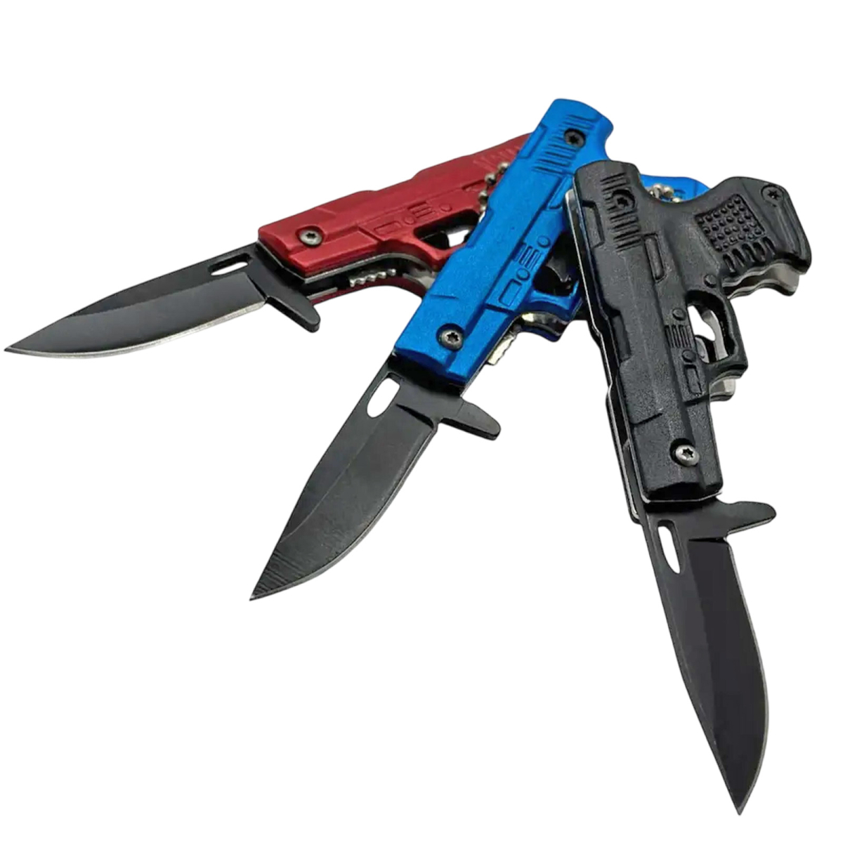 Складной нож Browning в форме пистолета — стильный и компактный EDC-инструмент, сочетающий оригинальный дизайн и практичность. Рукоять с текстурой пистолетной рукоятки надёжно лежит в руке. Клинок из стали 440C с геометрией Spear-Point подходит для большинства мелких бытовых задач, сохраняя остроту и защищённость от коррозии.