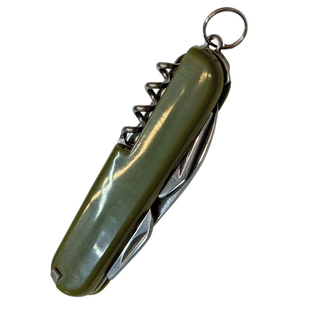 Основной инструмент складной нож длиной 6 см, подходит для бытовых задач, нарезки, мелкой работы в походных условиях. В конструкции предусмотрены дополнительные функции: штопор для открывания винных бутылок, отвертка, консервный нож и открывалка для бутылок.