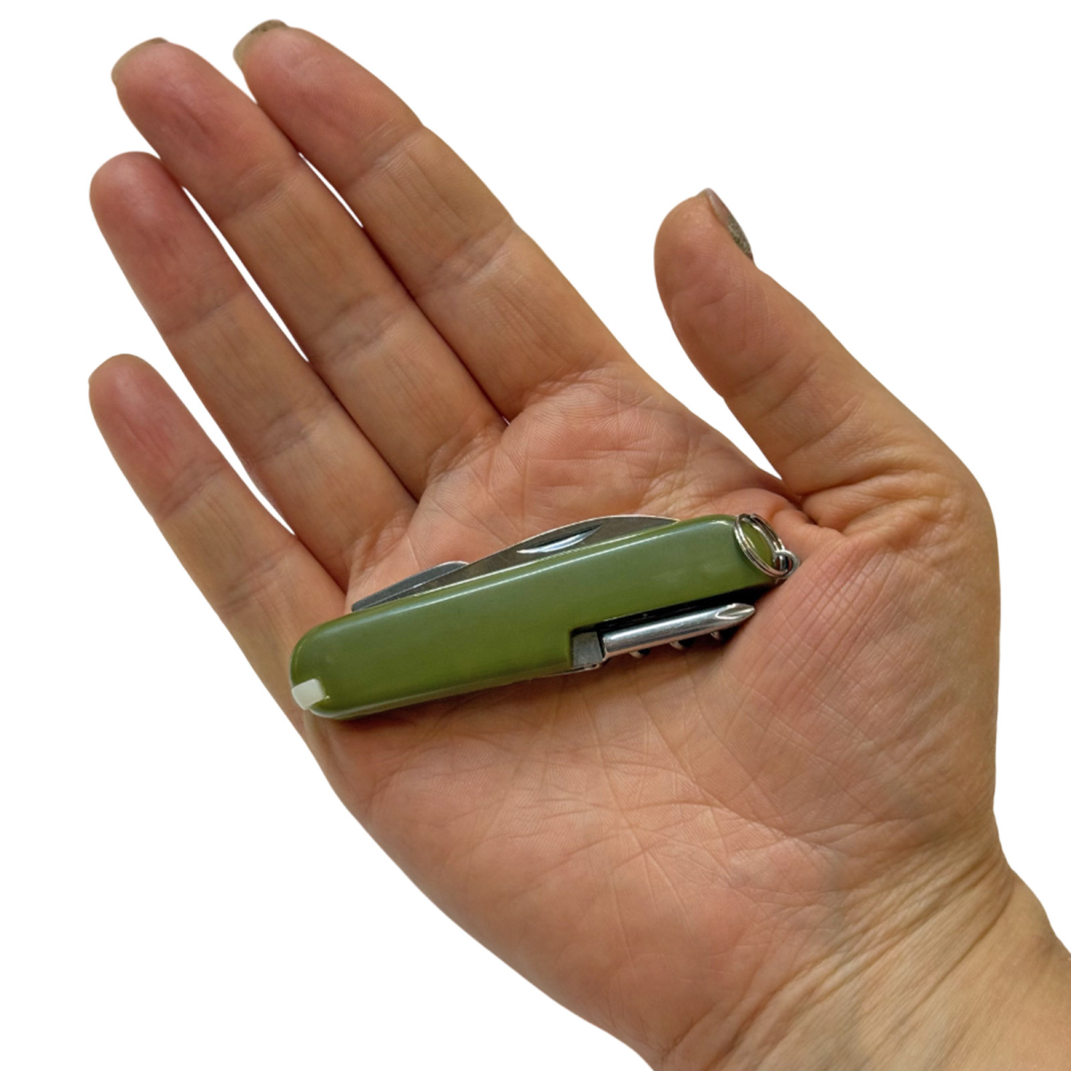Компактный многофункциональный мультитул для повседневного использования и выездов на природу. Корпус выполнен в классическом формате складного инструмента с гладкими накладками зелёного цвета и кольцом для крепления на ключи, карабин или темляк.