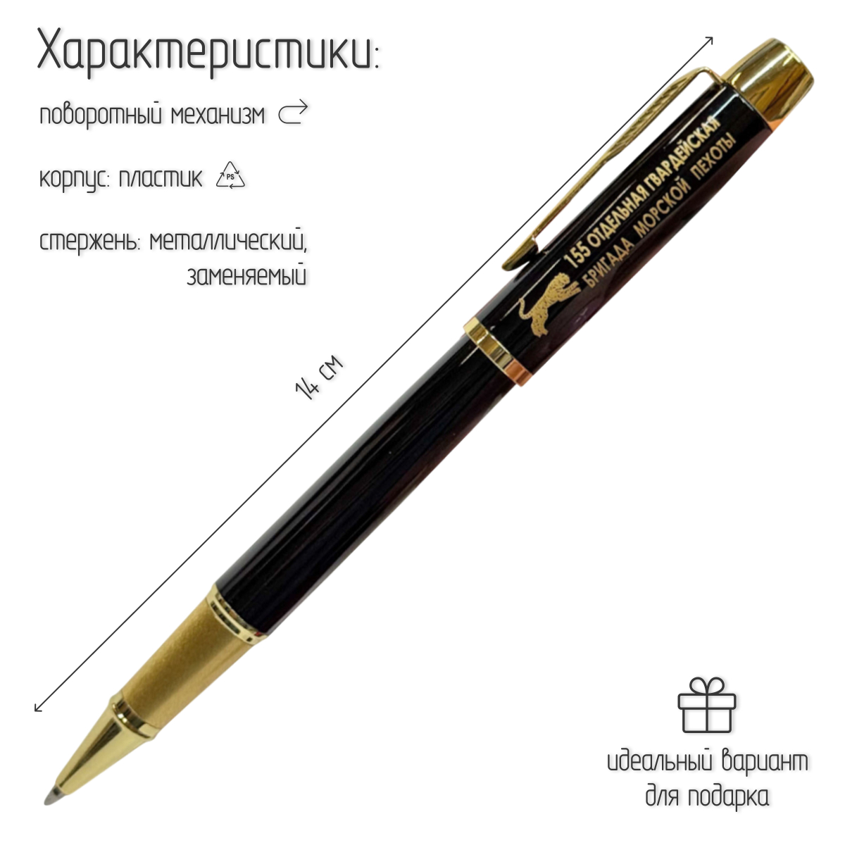 Купить сувенирную ручку с гравировкой "155 отдельная гвардейская бригада морской пехоты" можно в Военпро, с удобной доставкой по всей РФ.