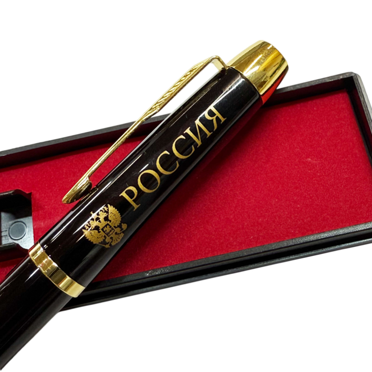 Купить сувенирную ручку с гравировкой  "Россия" с  гербом можно в Военпро, с удобной доставкой по всей РФ.