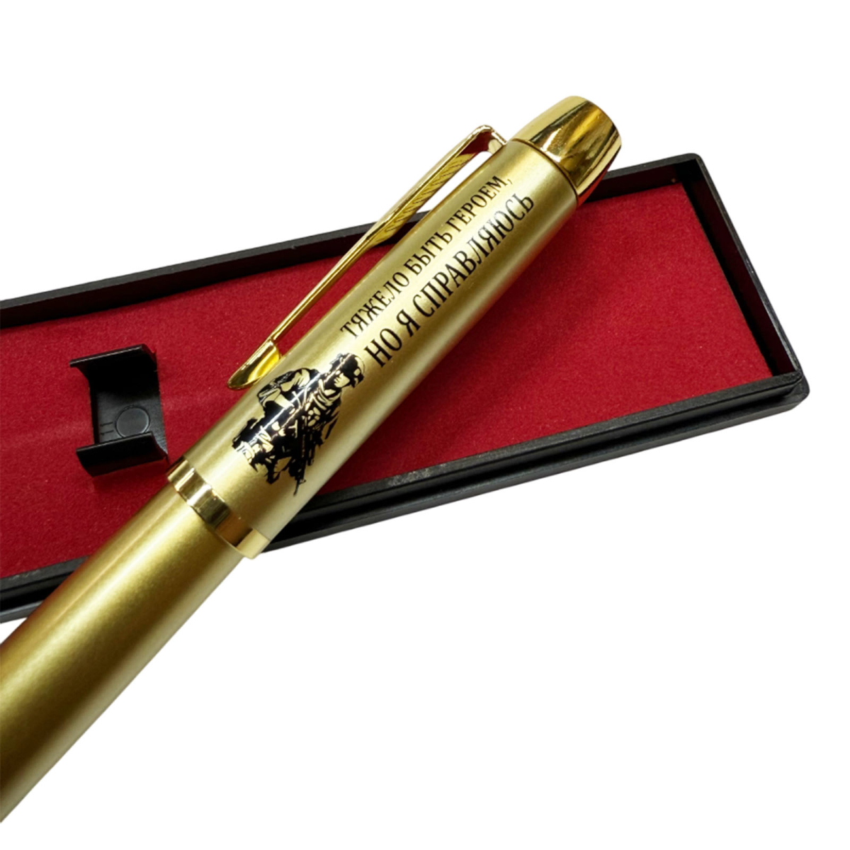 Купить сувенирную ручку с гравировкой "Тяжело быть героем,но я справляюсь" можно в Военпро, с удобной доставкой по всей РФ.