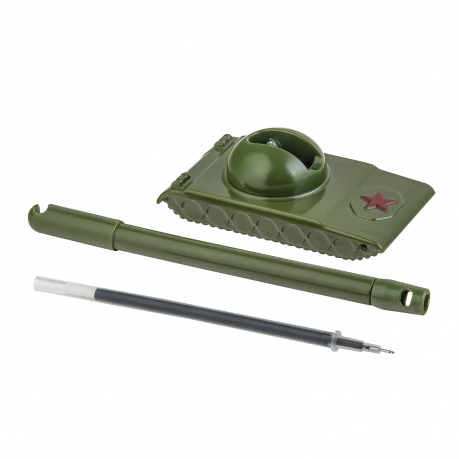 Купть сувенирную ручку-танк в военторге Военпро с доставкой по Москве и России. Яркий и доступный по цене сувенир, подходящий как взрослым, так и детям. Ручка длиной 12 см представляет собой пушку, а подставка - корпус танка.