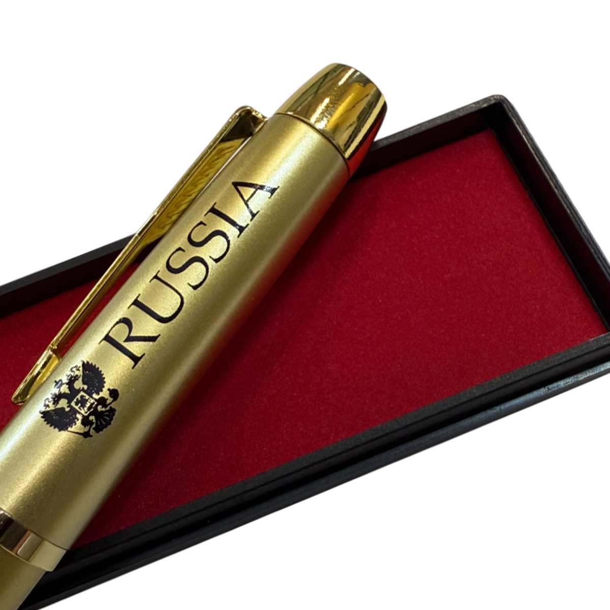 Сувенирная ручка золотистого цвета с гравировкой "RUSSIA"