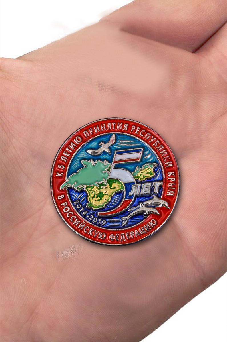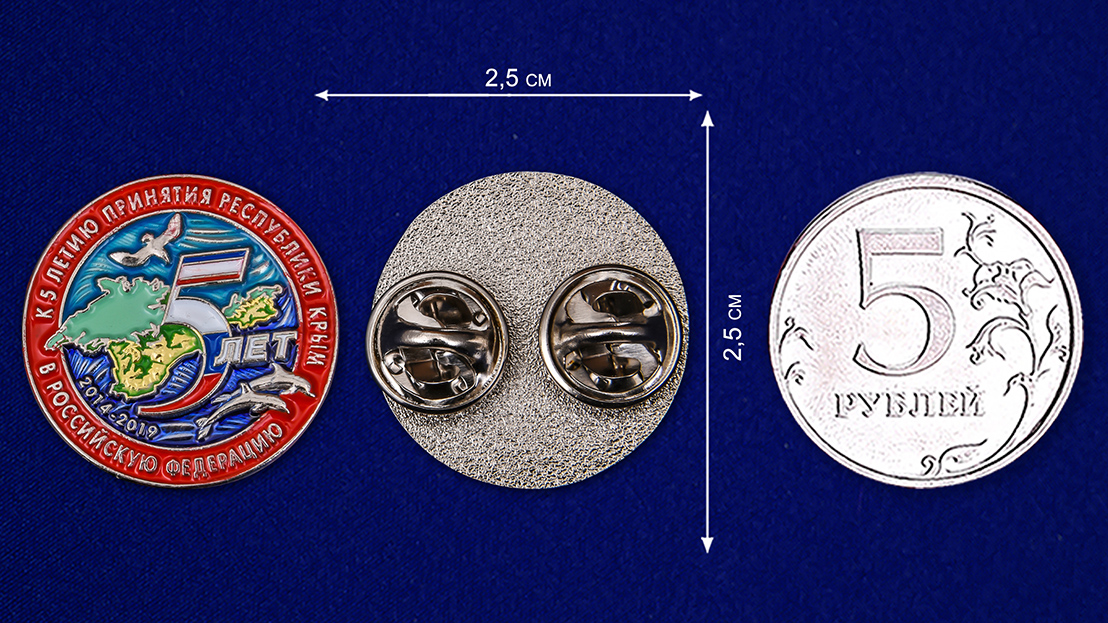 Сувенирный знак "5 лет принятия Республики Крым в РФ" отменное украшение на лацкан пиджака.