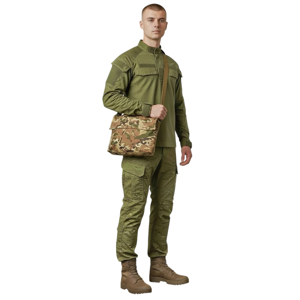 Армейская сумка через плечо разработана в утилитарном формате для повседневного и служебного использования. Выполнена из износостойкой ткани с повышенной прочностью на разрыв. Компактные размеры 45х25х10 см обеспечивают оптимальный баланс между вместимостью и мобильностью, позволяя переносить документы, средства связи, индивидуальные принадлежности и элементы экипировки без избыточного объёма.