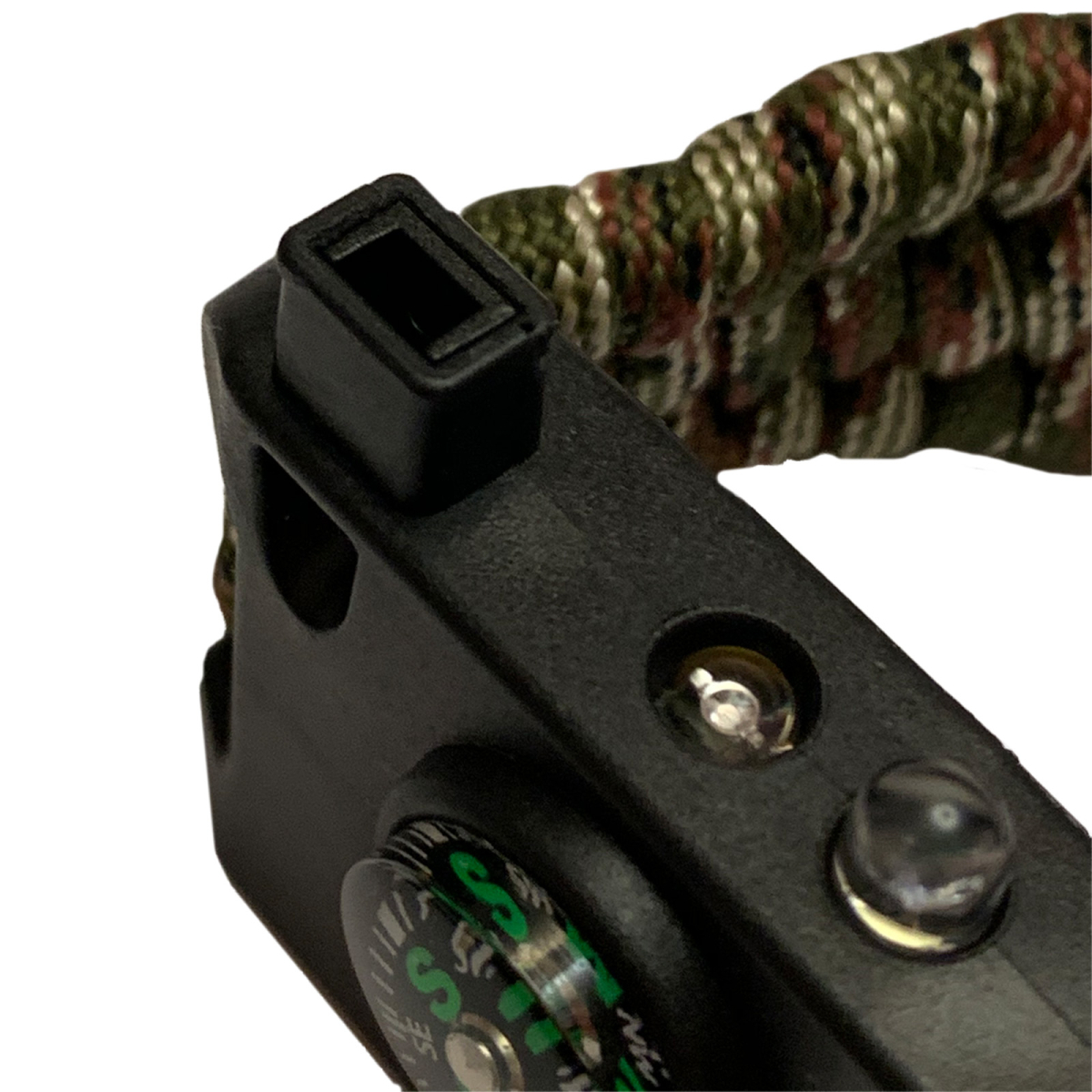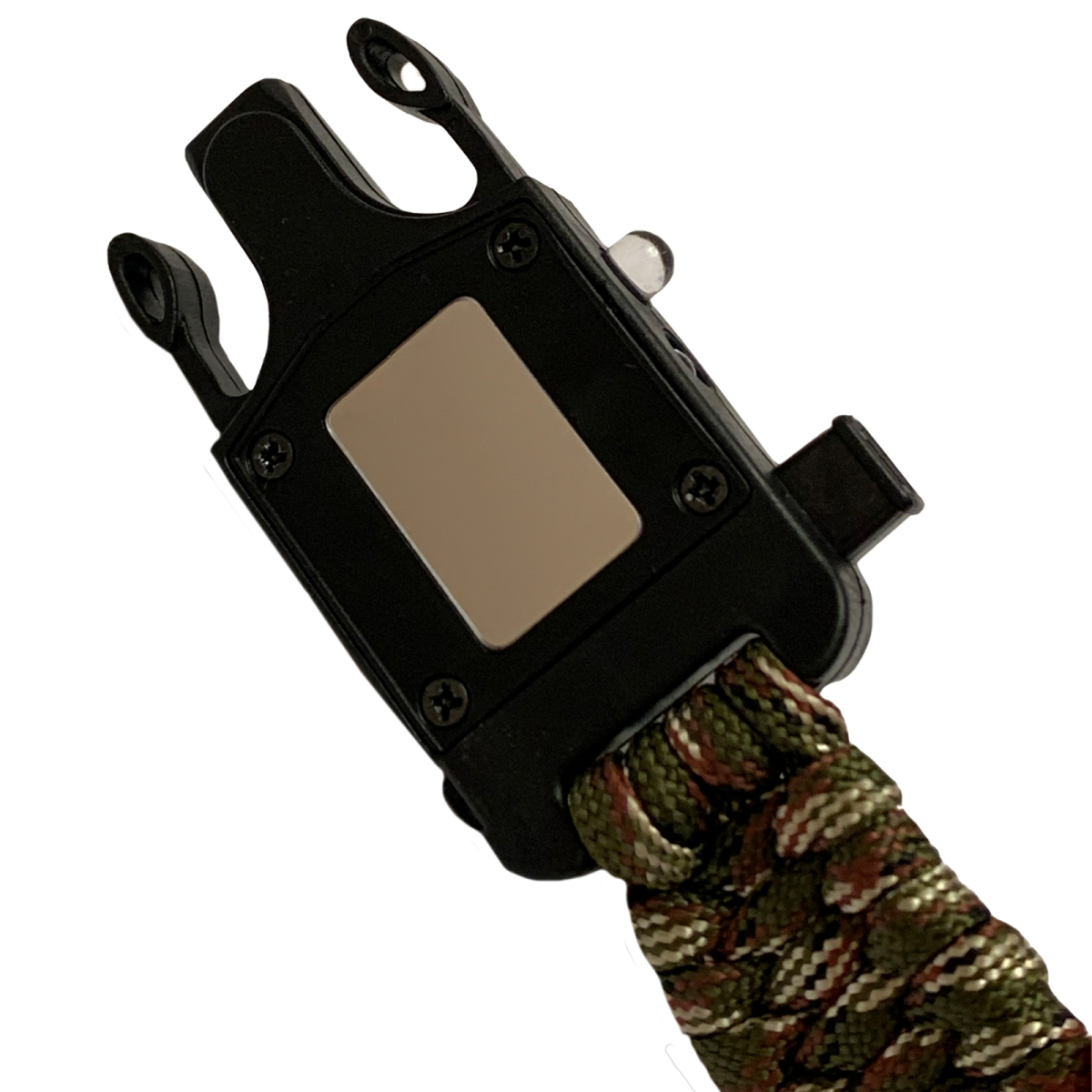 На передней части функциональной панели имеется компас, который всегда поможет определить стороны света для ориентирования на местности. На боковой части браслета имеется свисток, который поможет обратить внимание на себя, подозвать собаку на охоте или спугнуть дикого зверя.