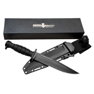 На тыльной часки расположена съёмная ударная лапка с отверстием под темляк. Гарда предотвращает соскальзывание руки на кромку при колющих движениях. В комплекте поставляются прочные тактические ножны, совместимые с MOLLE.