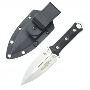 На хвостовике ножа Microtech Borka Blades расположено отверстие под темляк, что позволяет фиксировать нож страховочным шнуром при работе на высоте, на воде или в ограниченном пространстве. В комплект входят прочные ножны из Kydex с креплением на пояс.