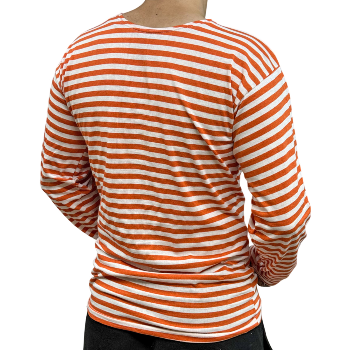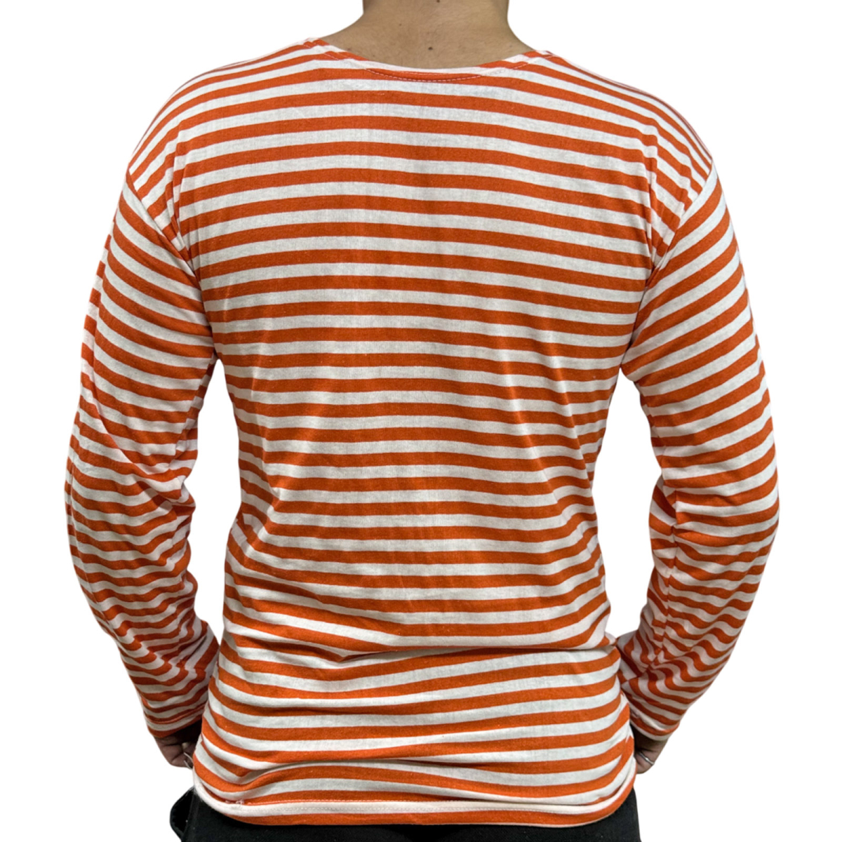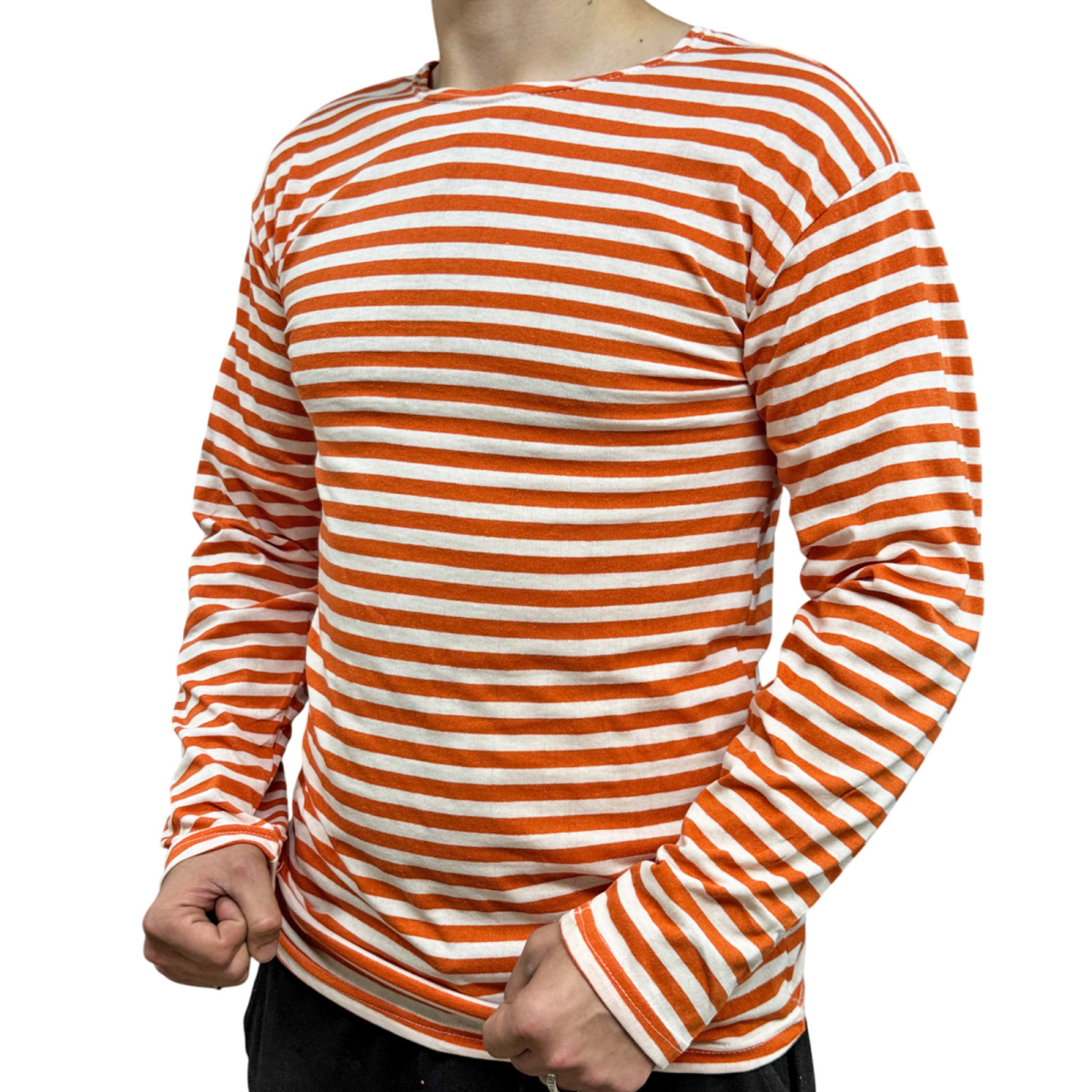 Плотная ткань защищает от ветра и холода, а длинный рукав делает модель универсальной — для носки в любую погоду. Классические бело-оранжевые полосы тельняшки — символ надёжности, мужества и принадлежности к тем, кто всегда готов прийти на помощь.