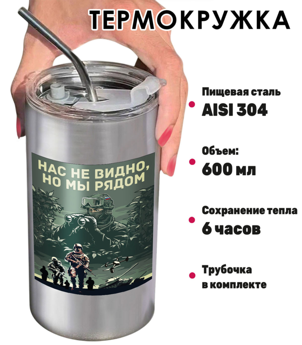 Купить термокружку "Нас не видно, но мы рядом" можно в Военпро, с удобной доставкой по всей РФ.