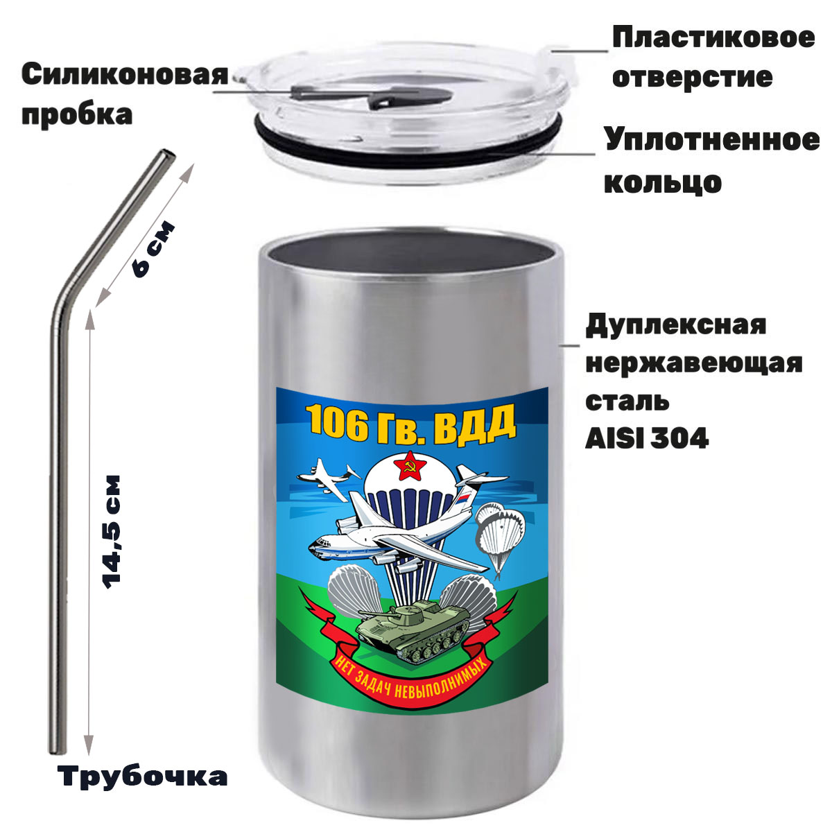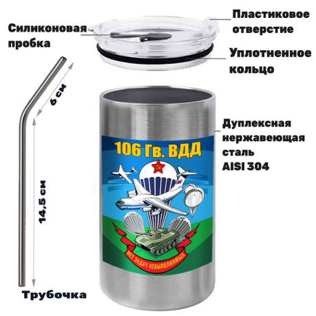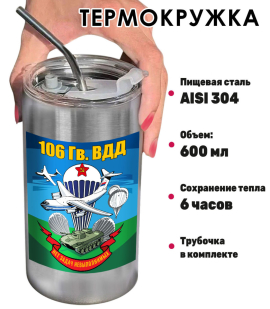 Купить термокружку "106 гв.ВДД" с виниловой наклейкой можно в Военпро, с удобной доставкой по всей РФ.