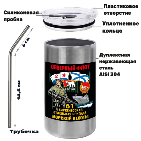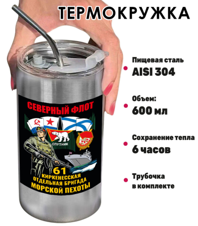 Купить термокружку “61-я Киркенесская ОБрМП” с виниловой наклейкой можно в Военпро, с удобной доставкой по всей РФ.