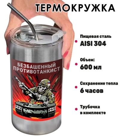 Купить термокружку "Безбашенный противотанкист" можно в Военпро, с удобной доставкой по всей РФ.