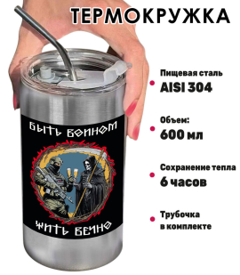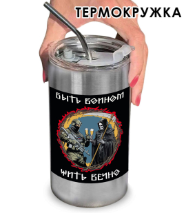 Купить термокружку "Быть воином - жить вечно" с виниловой наклейкой можно в Военпро, с удобной доставкой по всей РФ.