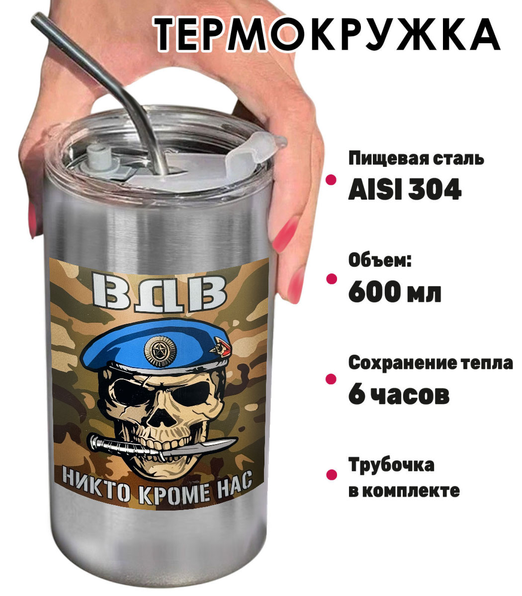 Купить термокружку череп ВДВ "Никто, кроме нас"  можно в Военпро, с удобной доставкой по всей РФ.