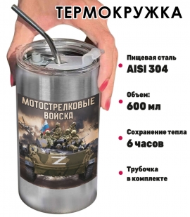 Купить термокружку "Мотострелковые войска" Z можно в Военпро, с удобной доставкой по всей РФ.