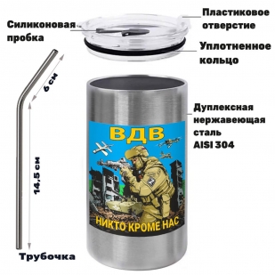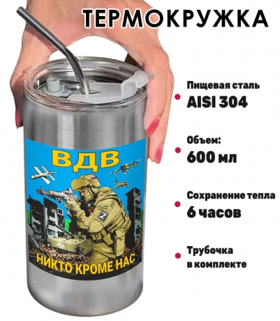 Купить термокружку ВДВ "Никто, кроме нас" можно в Военпро, с удобной доставкой по всей РФ.