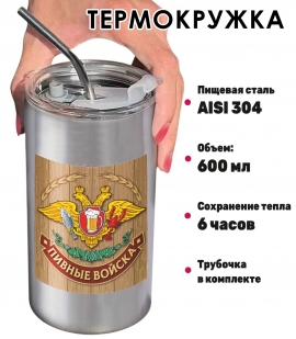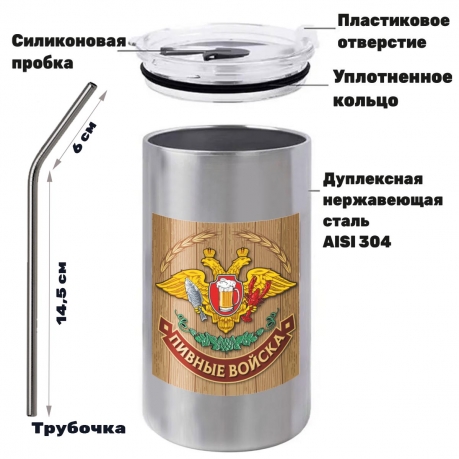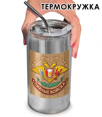Купить термокружку с трубочкой "Пивные войска" с виниловой наклейкой можно в Военпро, с удобной доставкой по всей РФ.