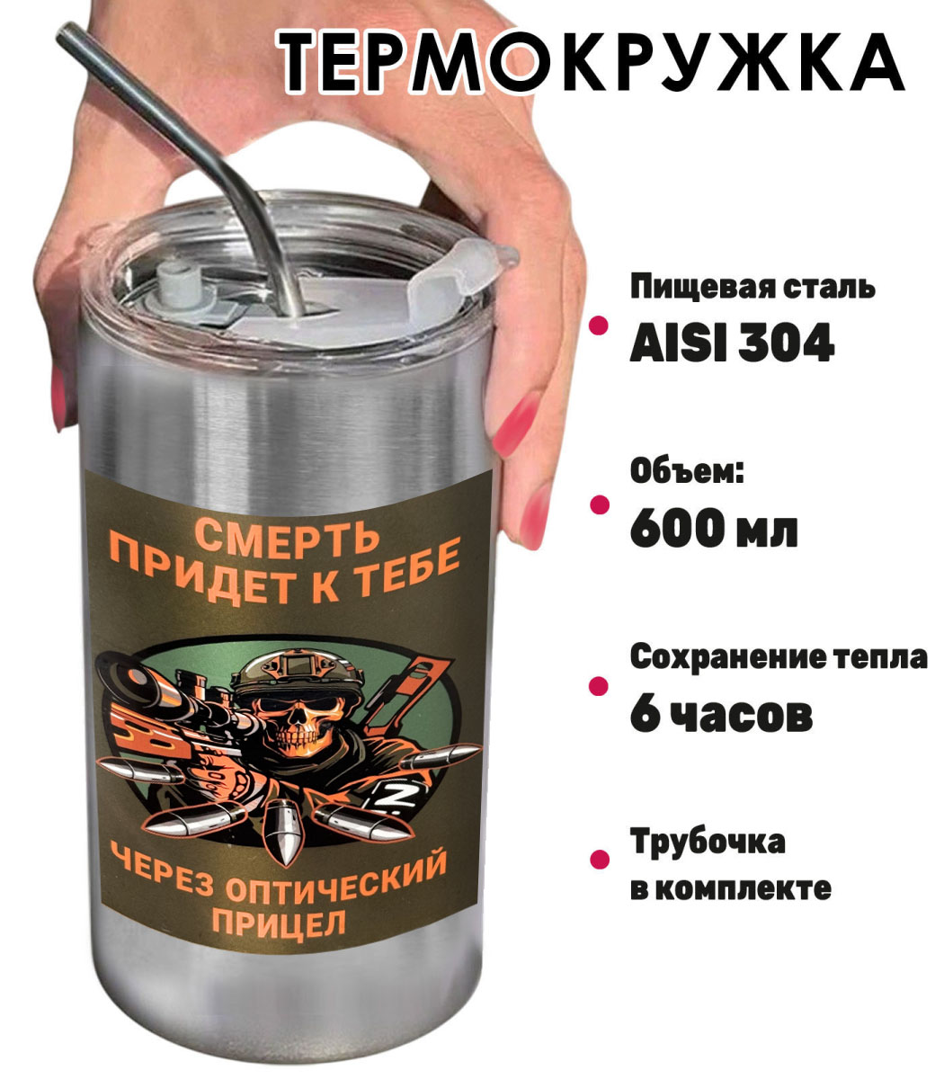 Купить термокружку "Смерть придёт к тебе через оптический прицел" можно в Военпро, с удобной доставкой по всей РФ.