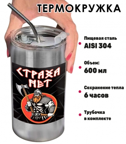 Купить термокружку "Страха нет" можно в Военпро, с удобной доставкой по всей РФ.