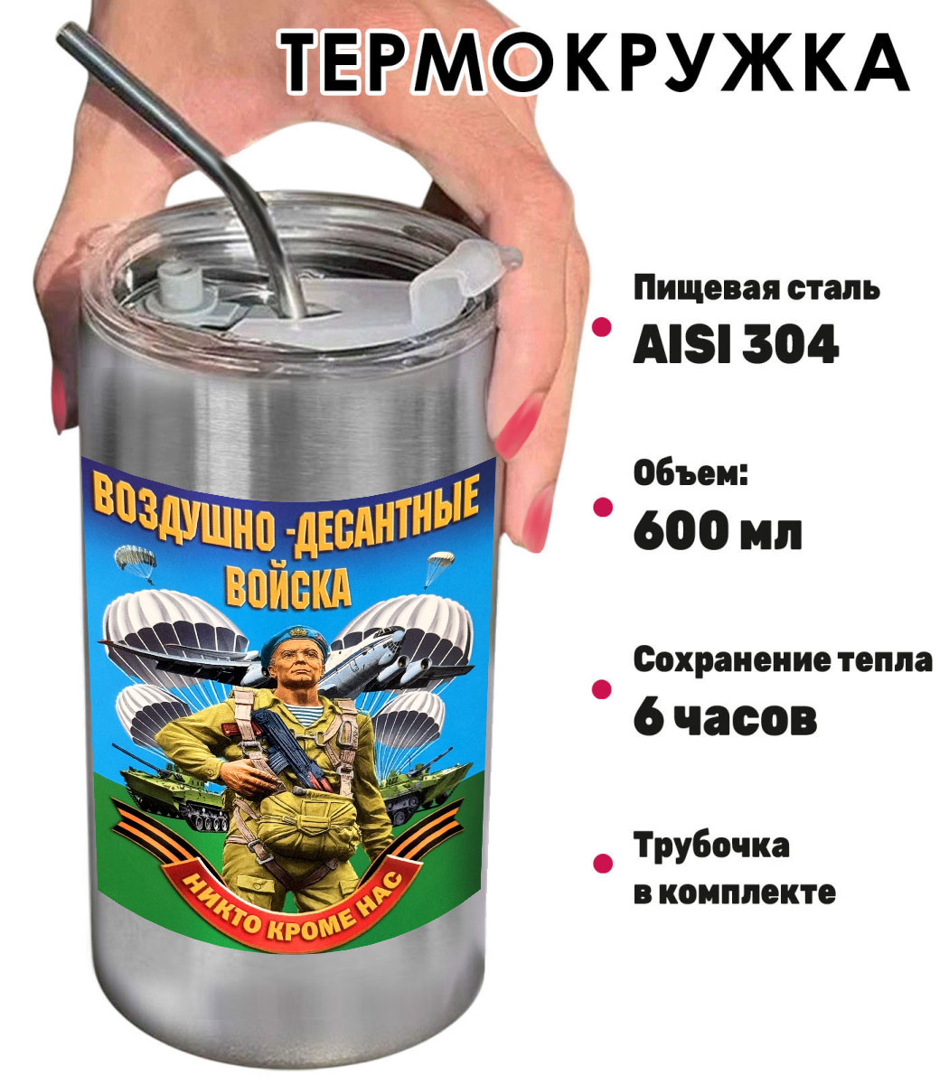 Купить термокружку "ВДВ - Никто, кроме нас!"можно в Военпро, с удобной доставкой по всей РФ.