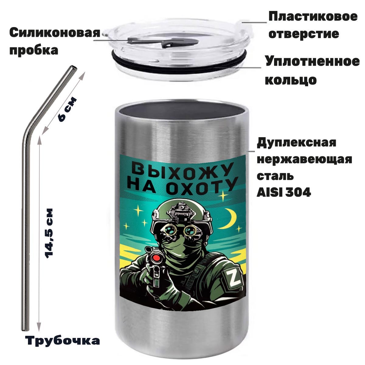 Купить термокружку "Выхожу на охоту" можно в Военпро, с удобной доставкой по всей РФ.