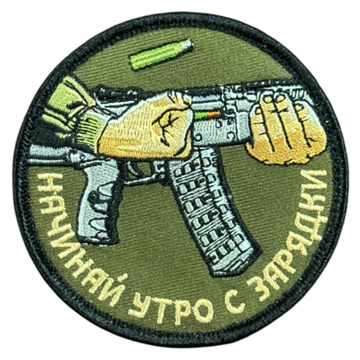 Купить шеврон на липучке "Начинай утро с зарядки" можно в Военпро, с удобной доставкой по всей РФ