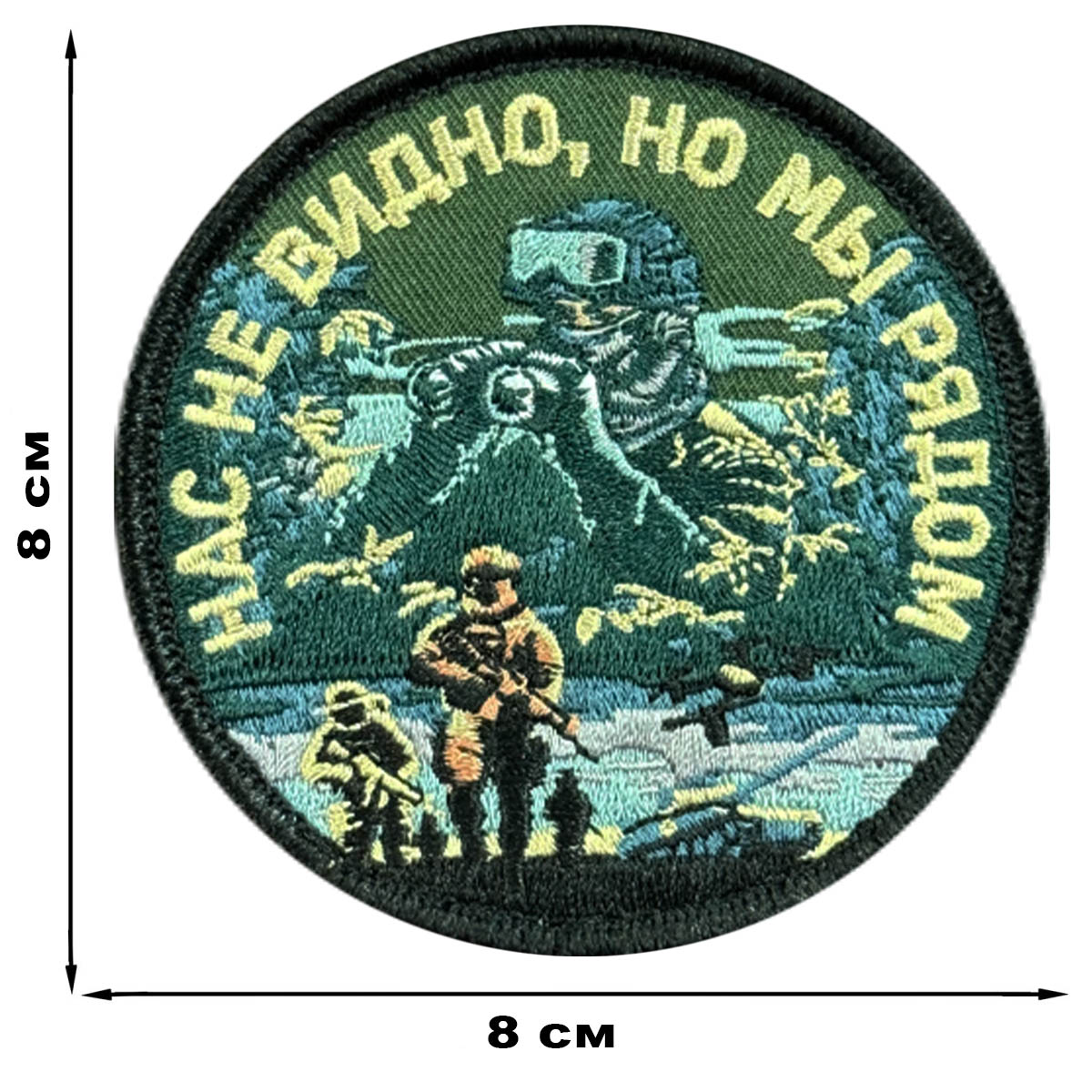 Вышитый шеврон с надписью "Нас не видно, но мы рядом"